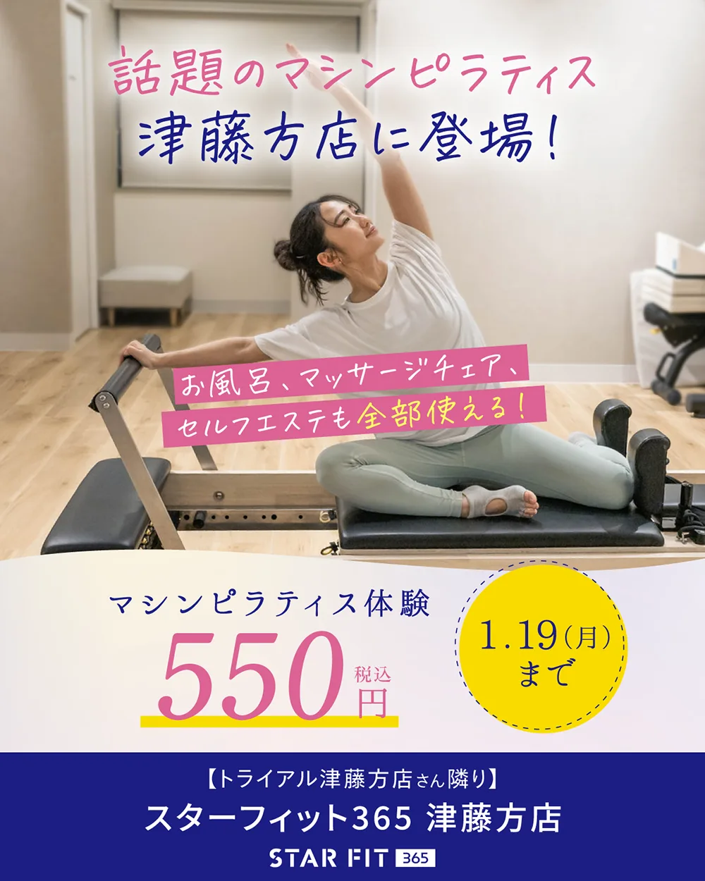 📅10/19(日)リニューアルオープン! スターフィット365 津藤方店に 話題の女性専用マシンピラティスを導入📢 初心者の方・運動に不安がある方でも安心してスタートできます! 🫧マシンピラティス体験会 ・期間:10/1 […]