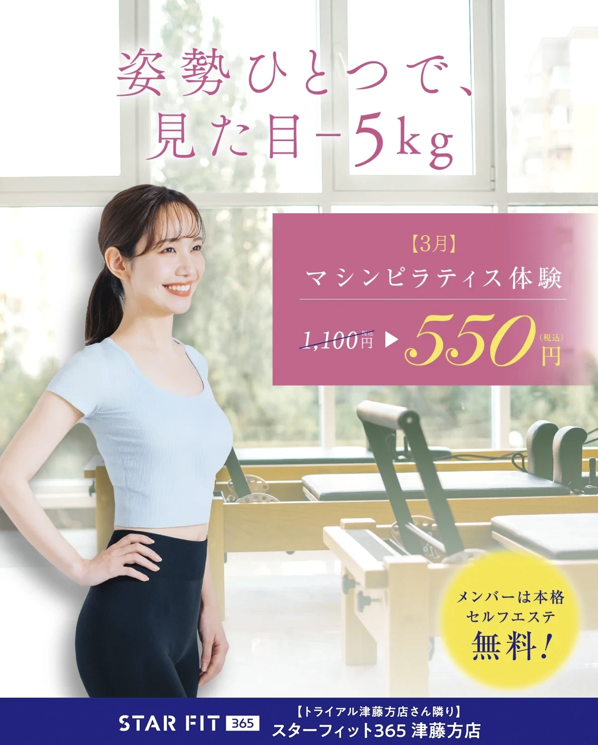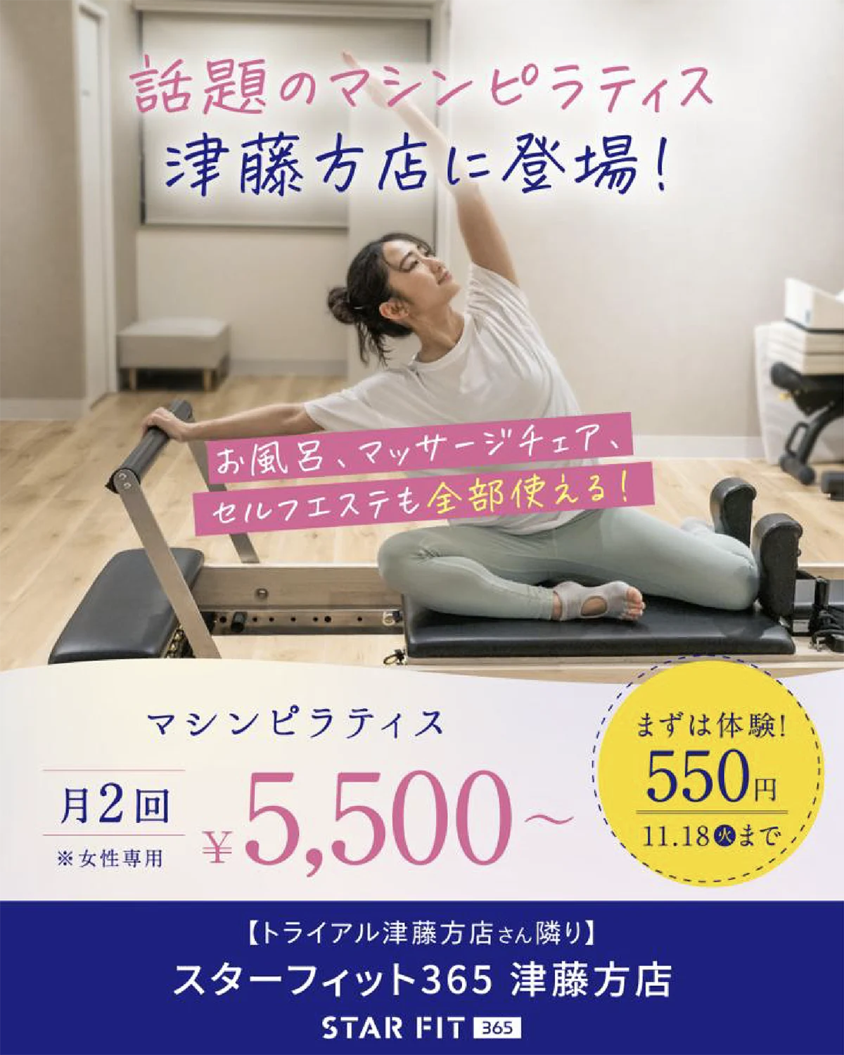 📅10/19(日)リニューアルオープン! スターフィット365 津藤方店に 話題の女性専用マシンピラティスを導入📢 初心者の方・運動に不安がある方でも安心してスタートできます! 🫧マシンピラティス体験会 ・期間:10/1 […]